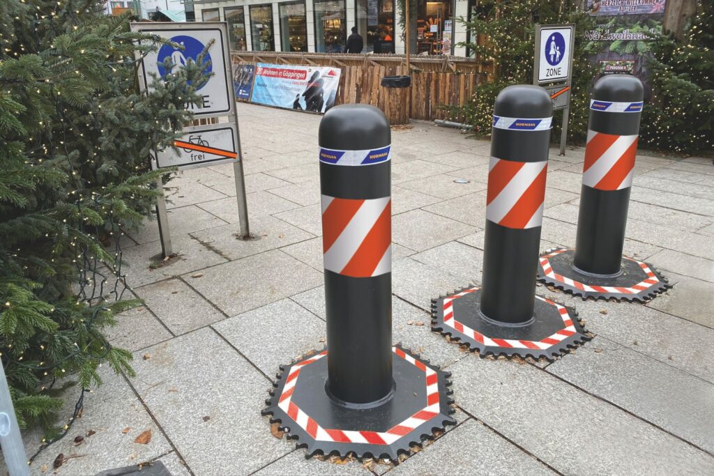 Tymczasowe mobilne bariery fizyczne w zapobieganiu atakom z użyciem pojazdu.